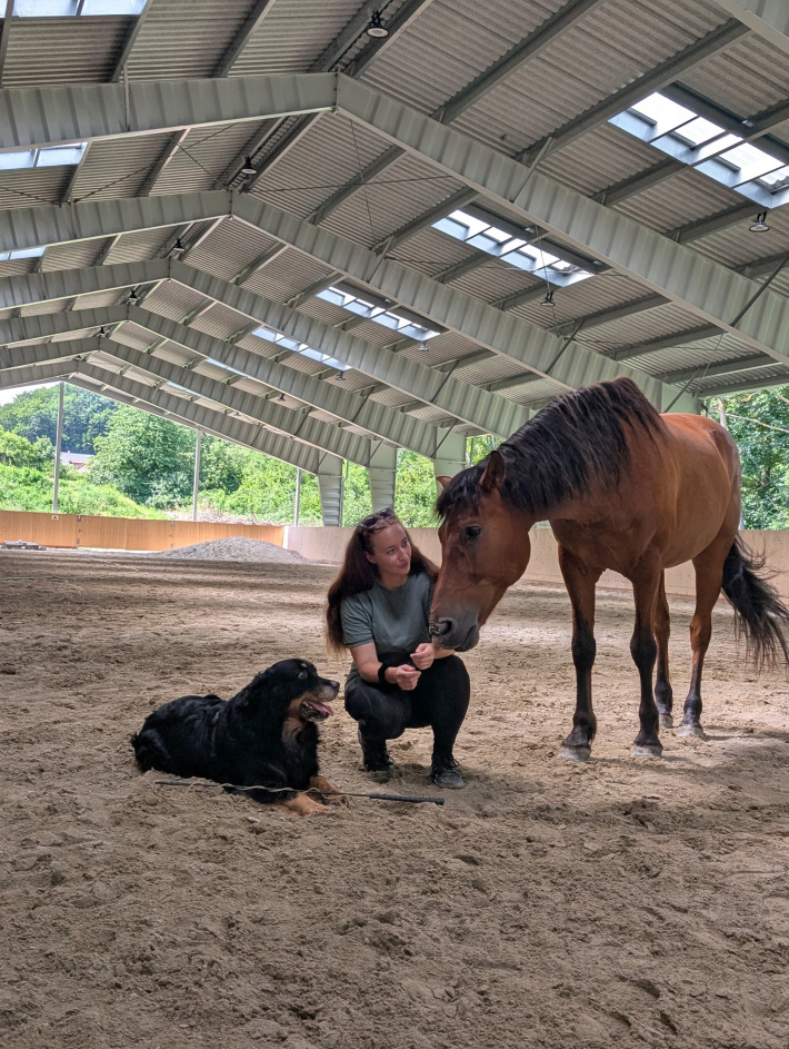 Für Hundebesitzer:innen, die ihre zwei Leidenschaften, Pferd & Hund, vereinen möchten. Entspannt im Stall, sodass jeder was davon hat.